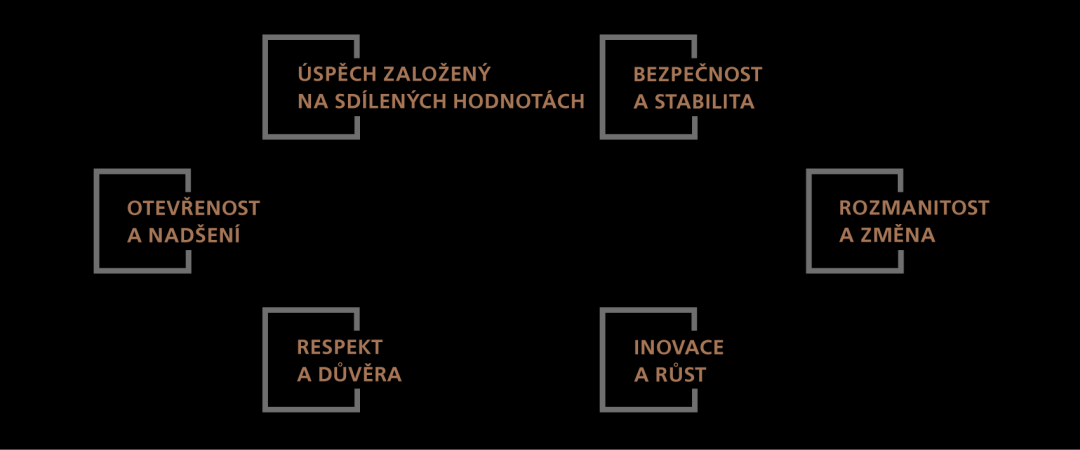 Základy naší firemní kultury jsou rozmanitost a změna spolu s bezpečností a stabilitou. Prostřednictvím otevřenosti a nadšení řídíme inovace a růst. Respekt a důvěra jsou nezbytné pro náš společný úspěch.